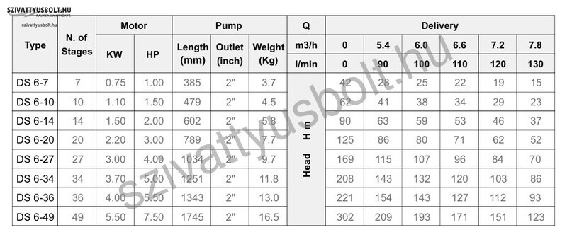 merülő, csőbúvár szivattyú 4 colos méretben