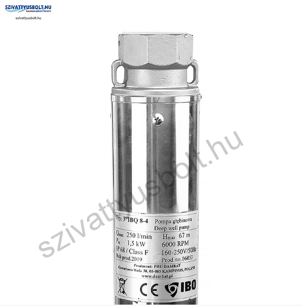 Az IBO 3 IBQ 8-6 többfokozatú búvárszivattyút, csőkút szivattyút fúrt kutakban és nyílt vízi tározókban való működésre tervezték. Más csőbúvárszivattyúkkal ellentétben az IBQ fejlett energiatakarékos motorokkal rendelkezik, állandó mágnessel és frekvenciaváltóval. Ennek eredményeként a motor max. 6000 ford./perc fordulatszámot és nagyon nagy teljesítményt ér el. Az állandó mágnesekkel és inverterrel ellátott motor kialakításának számos előnye van a hagyományos szivattyúkkal szemben. Ezek a következőek. Energiamegtakarítás a motor és a szivattyú nagy teljesítményének köszönhetően. Ugyanazon hidraulikus nyomás és teljesítményparaméterek elérésével az IBQ szivattyúk olyan motorokkal is használhatók, amelyek körülbelül 20 %-kal kisebbek, mint a hagyományos szivattyúkban használt motorok. Szárazonfutás-elleni védelem. Az inverter elektronikája szabályozza a motor áramfelvételét. Ha specifikus szárazonfutást észlel, a motor leáll. Egy bizonyos idő elteltével a szivattyú megpróbál automatikusan újra indulni, és működése folytatódik,ha a víz beáramlás helyreáll. Lágy-indítás, aminek következtében a vízütésnek a hidraulikus rendszerre gyakorolt negatív hatása megszűnik, ezzel pedig jelentősen csökken a motor és a szivattyú mechanikai kopása, valamint a lágy indításnak köszönhetően a bekapcsolási áram nincs hatással az elektromos hálózatra. A hagyományos megoldásoknál a motor állandó működési paramétereinek eléréséhez gyors indításra van szükség. Indításkor a motor a normál üzemi áram többszörösét veszi fel a működés első néhány másodpercében (bekapcsolási áram). Ez feszültségingadozásokat eredményezhet az elektromos hálózatban, ami befolyásolhatja a hálózathoz csatlakoztatott egyéb eszközök működését, kiolvadhatnak a biztosítékok, és kiéghetnek a vezérlőegységek elektromos csatlakozásai. Általában a szivattyú hidraulikus paraméterei indításkor pillanatnyilag magasabbak a névlegesnél, ami azt jelenti, hogy az üzemelés első másodperceiben a névlegesnél magasabb paraméterekkel (nyomás, áramlás) rendelkező, adott hálózatra tervezett víz kerül a rendszerbe. Ezt hidraulikus sokknak nevezik. Az ismételt hidraulikus sokk a vízellátó rendszer hidraulikus alkatrészeinek túlzott kopásához vezet. Egy másik hátrány, amelyet a lágy-indítás megszüntet, a motor mechanikai és elektromos kopása. A vízütés fokozott mechanikai terhelést okoz a motoron és a szivattyún, a nagy indítóáram pedig gyengíti a motor belső szigetelését. A motorok viszonylag nagy feszültségingadozással működhetnek, egyfázisú motoroknál 160-250 V, háromfázisú motoroknál 320-450 V. Az IBQ szivattyúk hagyományos szivattyúkhoz képest kisebb méretei lényegesen alacsonyabb fúrási és szerelési költségeket eredményeznek.
